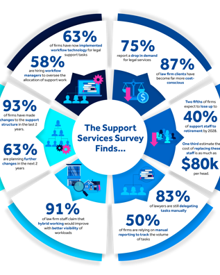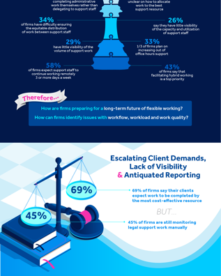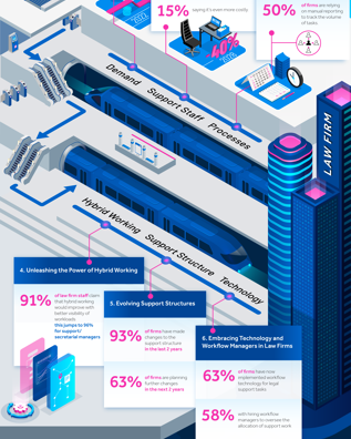 A view into the future for legal support services as hybrid working becomes standard practice: Findings from over 900 legal management professionals in the largest ever industry survey of law firm workflow practices.