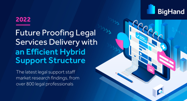 Examines how firms are leveraging people, process, and technology to accelerate change. Read Report Five to uncover why 91% of respondents believe that hybrid working would greatly benefit from better visibility of workloads. Unlock the key methods which law firms are leveraging investment to improve their support staff structures and see how BigHand Workflow Management is helping law firms achieve their long-term goals.