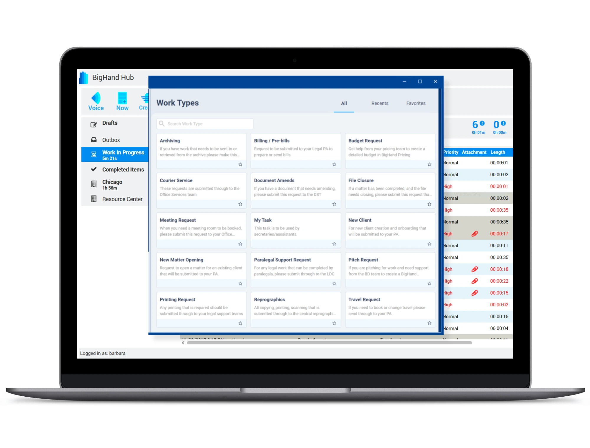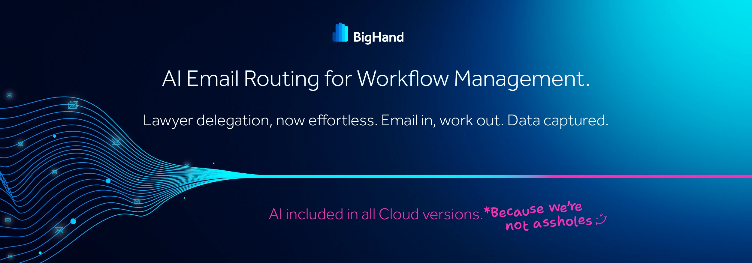 BigHand Workflow Management is a legal support services work allocation tool that captures incoming work, assigns it to the right resource, and provides real-time visibility into workloads, capacity, and performance. It replaces manual inbox triage, ad-hoc delegation, and guesswork with a structured, data-driven process that helps firms balance workloads, reduce bottlenecks, and make smarter staffing decisions.